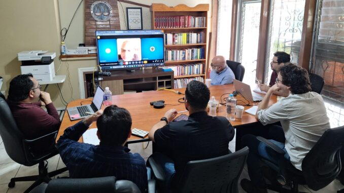 El profesor Berra explicó que esta visita forma parte de la metodología de enseñanza desarrollada por él en la UCLA, que además del aprendizaje tradicional, tiene otros dos componentes: el trabajo colaborativo con universidades hermanas de otros países y los “Encuentros del saber”, que consisten en intercambio pedagógicos con organizaciones de la sociedad civil y organismos internacionales como el OACNUDH en Honduras. Luego propuso desarrollar el coloquio alrededor de dos bloques temáticos: 1) Naturaleza, origen y objetivos de la AJD; y 2) Situación y logros del sistema judicial en Honduras y su rol de protección de los derechos humanos.