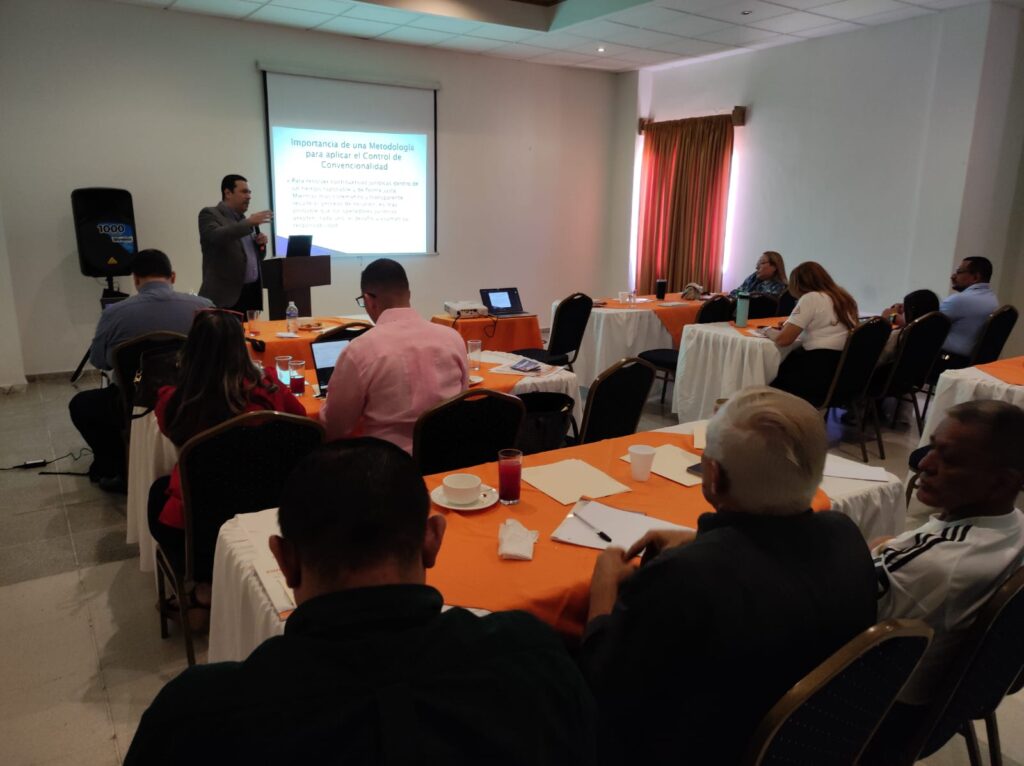 El taller se estructuró en tres ejes temáticos: a) la naturaleza y fundamentos del control de convencionalidad; b) su aplicación para garantizar derechos de sectores vulnerables; c) y ejercicios prácticos basados en la metodología Themis, desarrollada en el marco del programa DIRAJUS/GIZ. Cada exposición tuvo un enfoque participativo, complementado con espacios de Foro Abierto que facilitaron el intercambio de experiencias y criterios entre los asistentes.